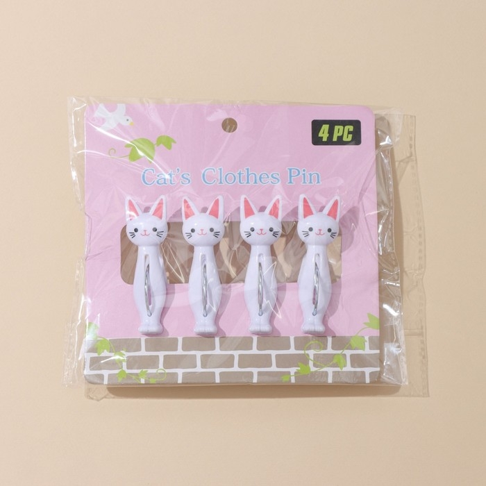 Прищепки бельевые «Коты», 7 см, 4 шт, цвет белый