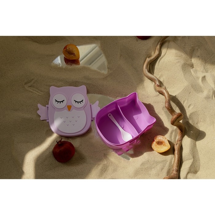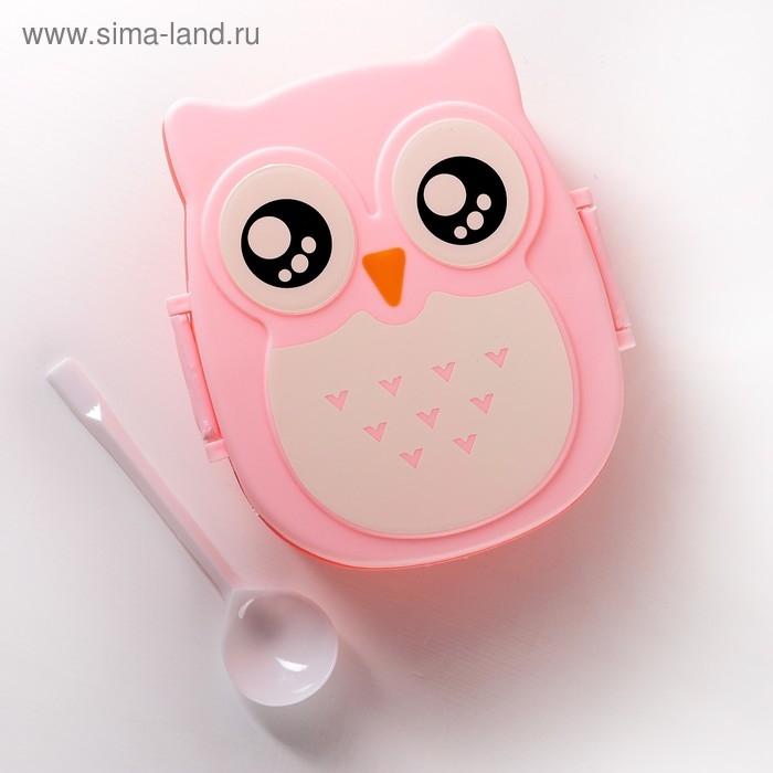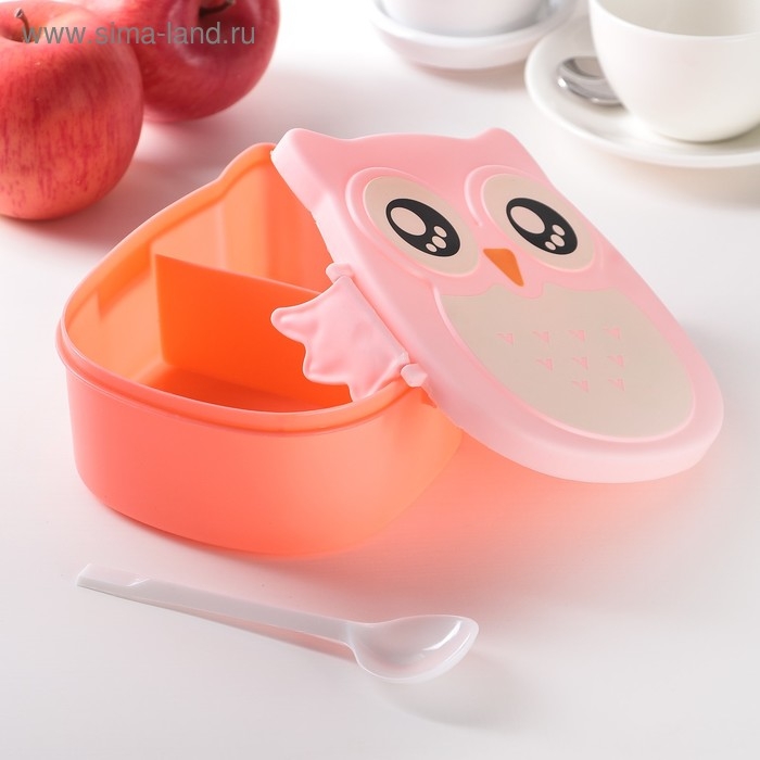 Ланч - бокс пластиковый с ложкой«Совушка», 2 отделения: 300 мл, 450 мл, цвет МИКС