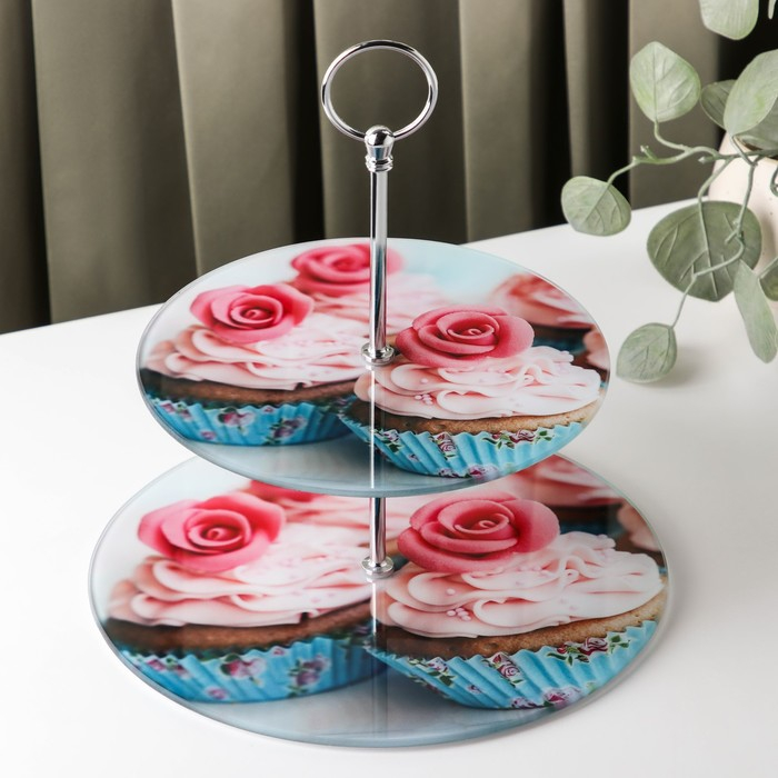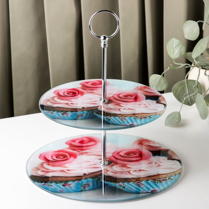 Этажёрка - фруктовница круглая Доляна «Маффин», 2 яруса, d=25/20 см, стекло