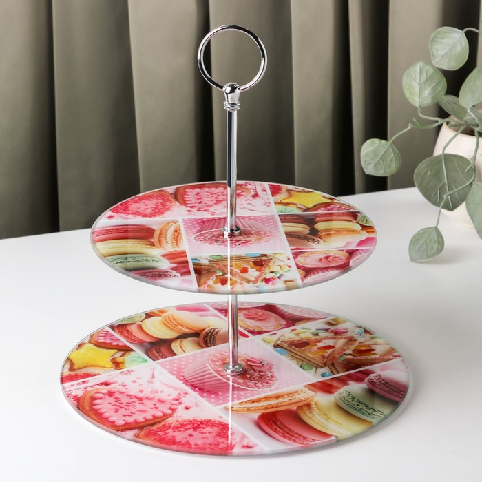 Этажёрка - фруктовница круглая Доляна «Сладости», 2 яруса, d=25/20 см, стекло, цвет розовый