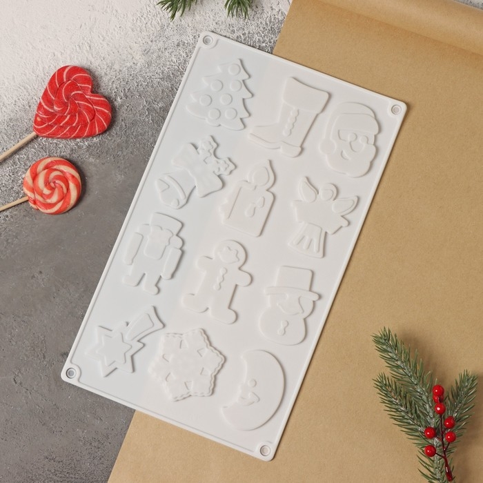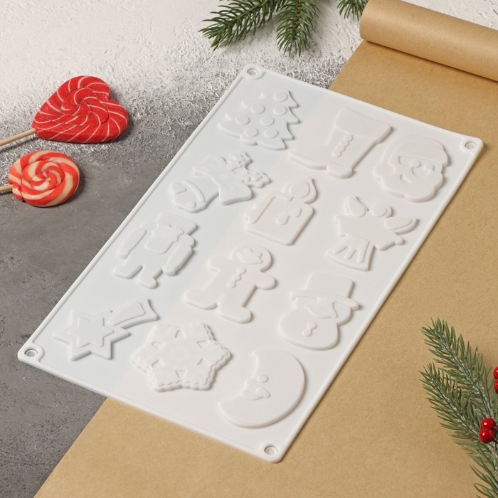 Форма для кондитерских украшений новогодняя Доляна «Новый год», силикон, 29,3×17,3 см, 12 ячеек, цвет белый