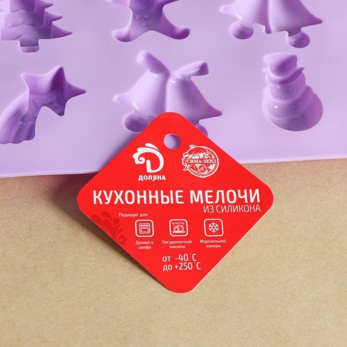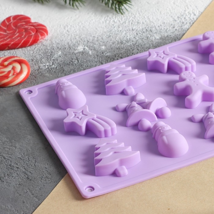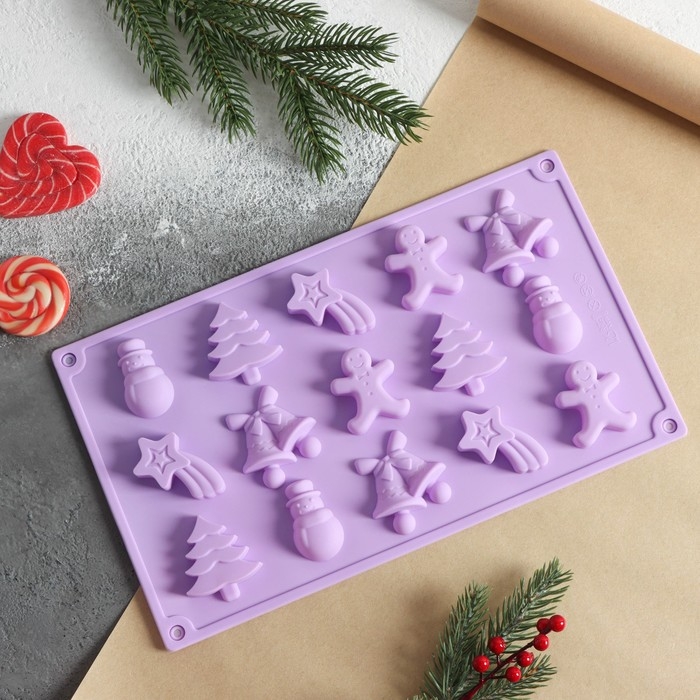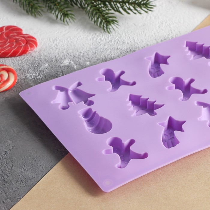 Форма для конфет и шоколада новогодняя Доляна «Ёлочки - иголочки», силикон, 30×17,3×1,3 см, 15 ячеек, цвет сиреневый