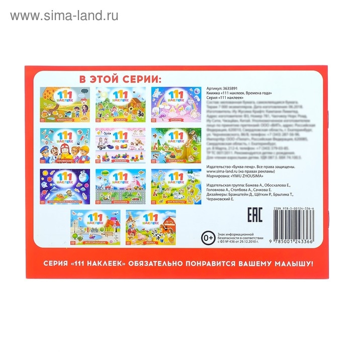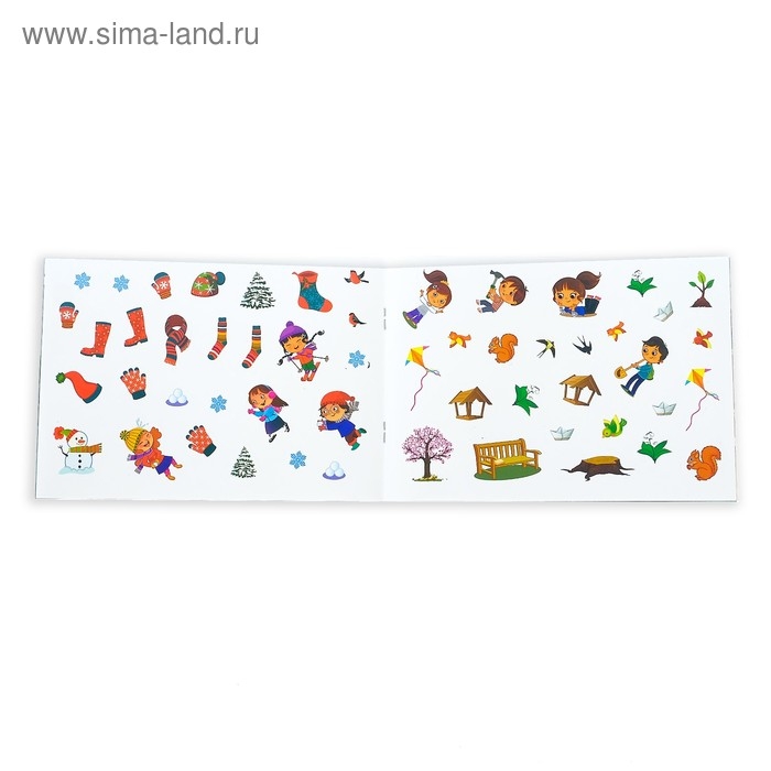 - В альбоме представлено более 100 наклеек с красочными изображениями одежды и атрибутов 4 времён года.