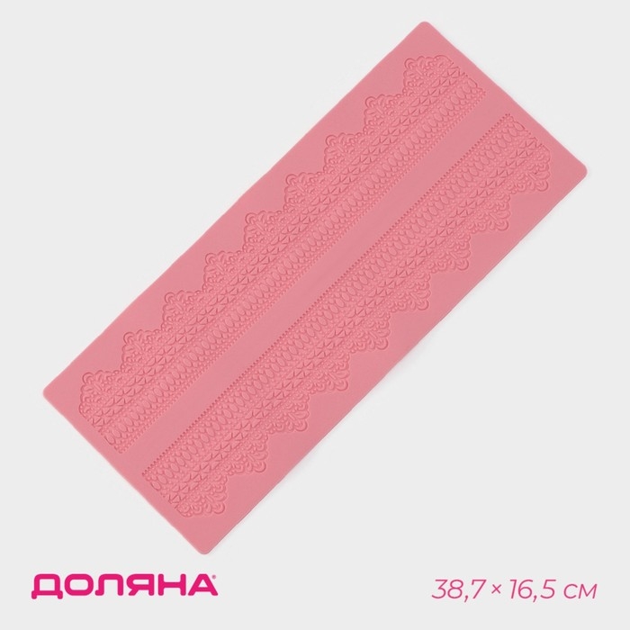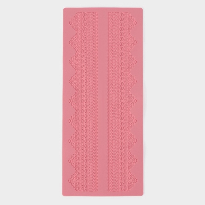 Коврик для айсинга Доляна «Кружево», силикон, 38,7×16,5 см, цвет розовый