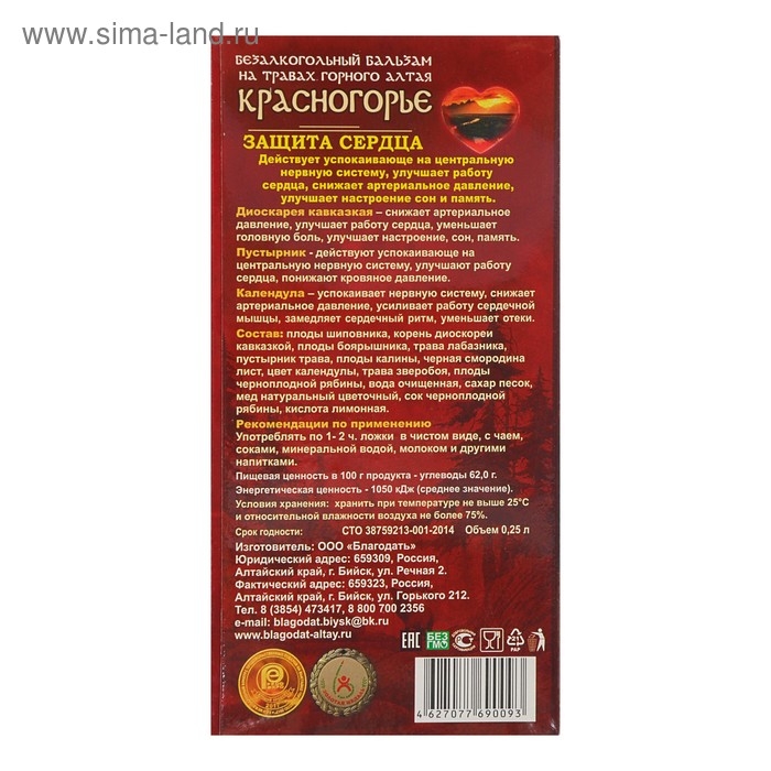 Бальзам безалкогольный "Красногорье" защита сердца, 250 мл