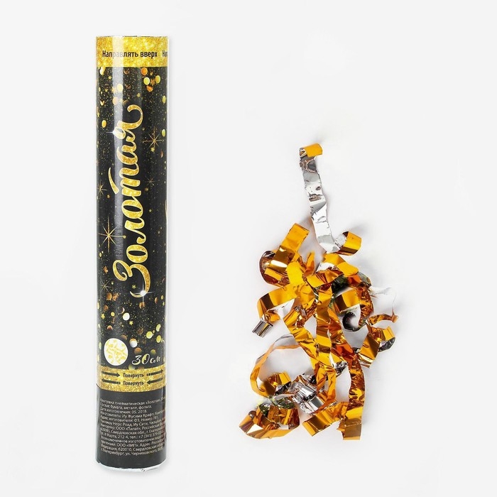 Хлопушка пневматическая «Золотая», фольга, серпантин, 30 см