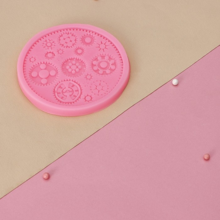 Молд Доляна «Шестерёнки», силикон, 10,5×10,5 см, цвет розовый