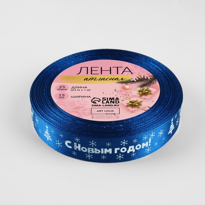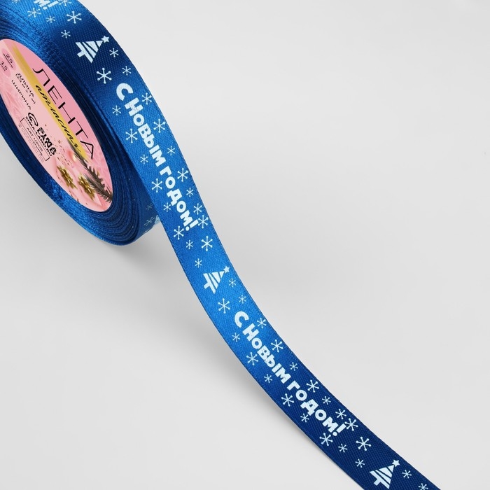 Новый год! Лента атласная «С Новым годом», 15 мм, 23 ± 1 м, цвет синий №122