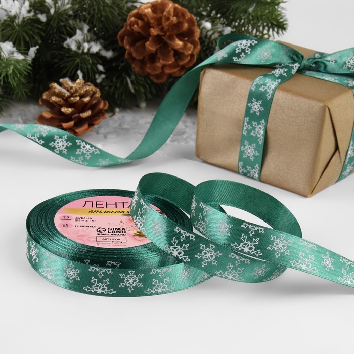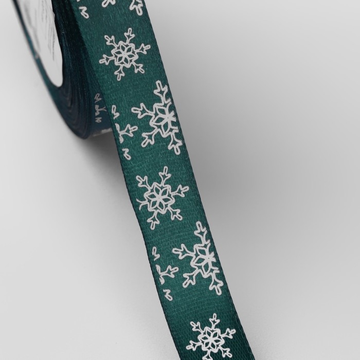Новый год! Лента атласная «Снежинки», 15 мм, 23 ± 1 м, цвет зелёный №56