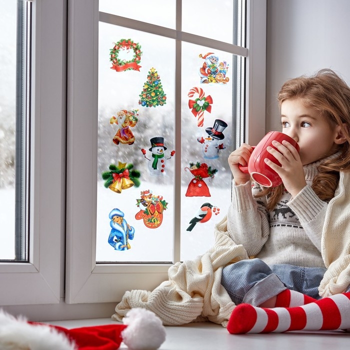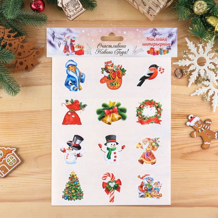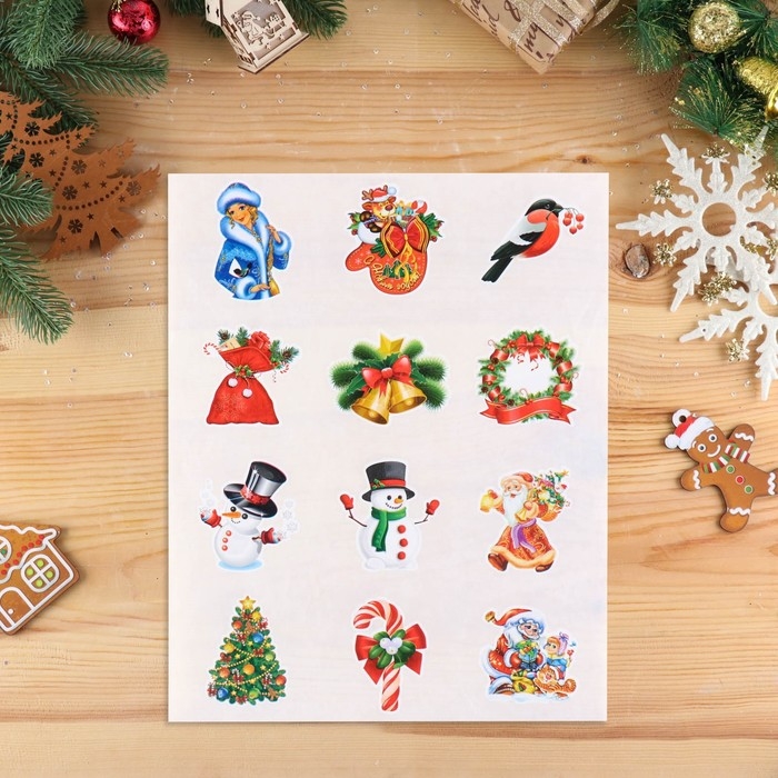 Набор наклеек "Новогодний" 12 наклеек новогодних в наборе, 9 х 9 см