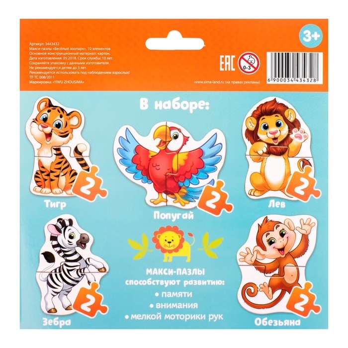 Макси-пазлы «Весёлый зоопарк», 5 пазлов, 10 деталей