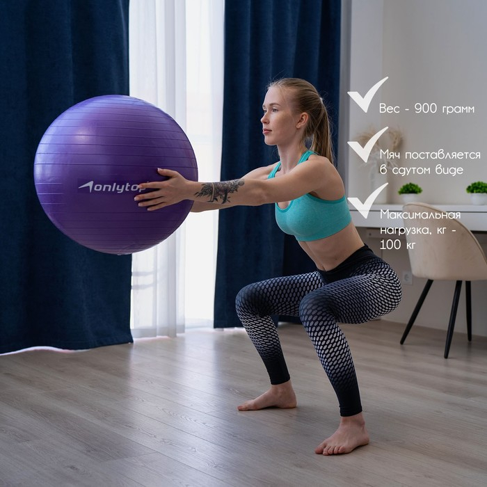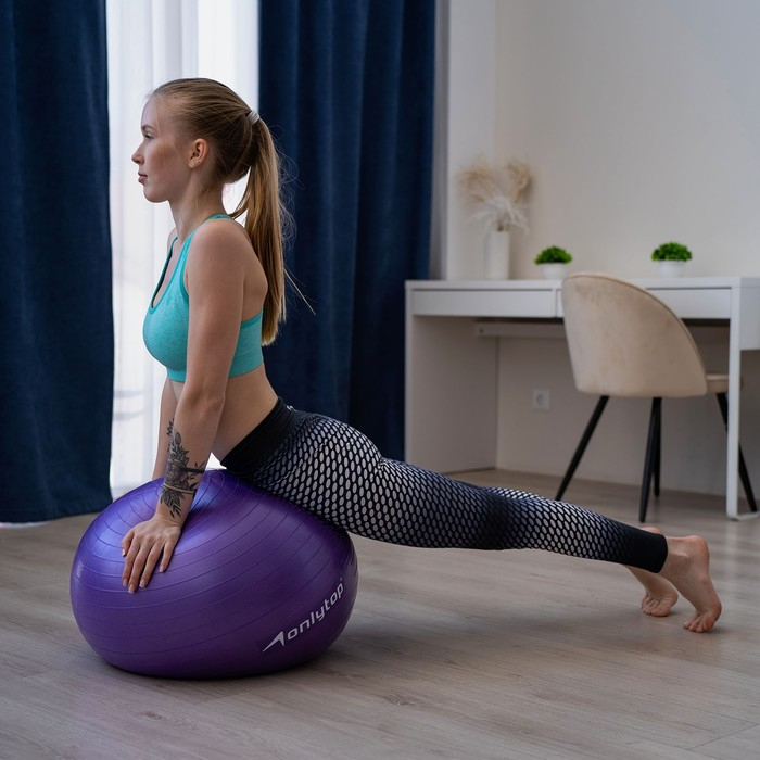 Фитбол ONLYTOP, d=65 см, 900 г, антивзрыв, цвет фиолетовый