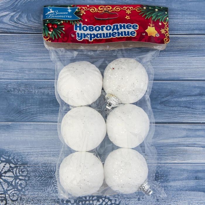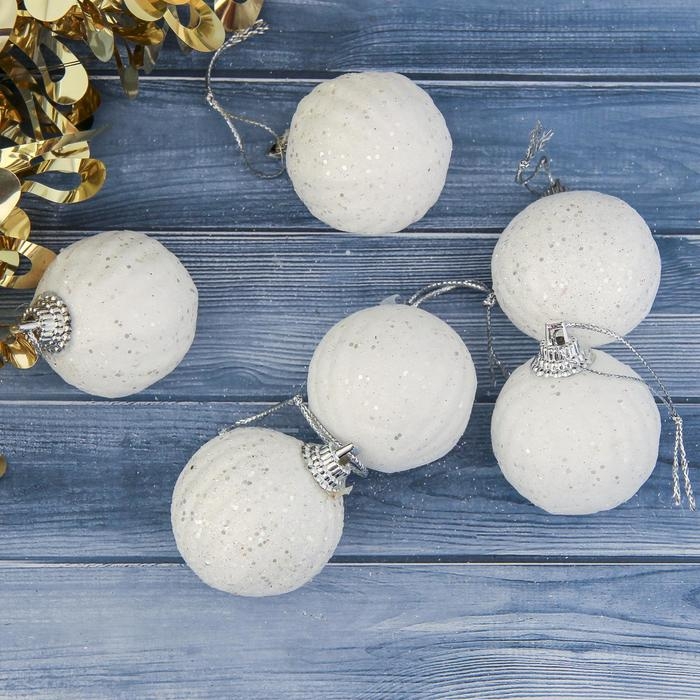 Набор шаров пластик d-3,5 см, 6 шт "Снежная пудра" белый