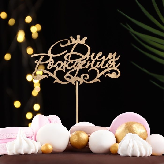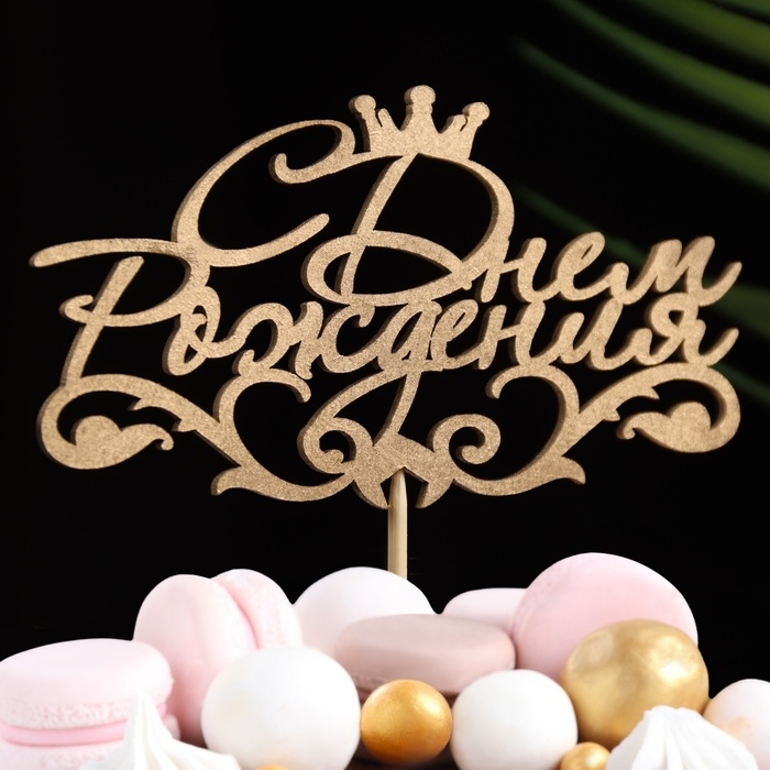 Топпер "С Днём Рождения, с короной" на подвесе, золотой Дарим Красиво