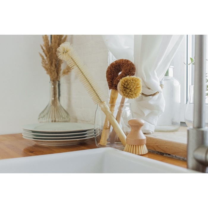 - Кухонный ёрш подходит для мытья посуды, детских бутылочек, сосок, банок, колб кальянов, ваз, кувшинов, чайников, бутылок, термосов, стаканов, графинов и прочей глубокой посуды с узким горлышком.