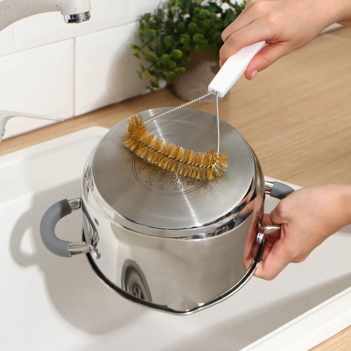 Щётка для чистки посуды и решёток-гриль Raccoon, металлической щетина, 23,5×11 см, цвет белый