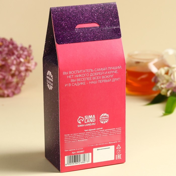 Чай чёрный «выпускной детский сад: Любимому воспитателю», в коробке, мята, 100 г.