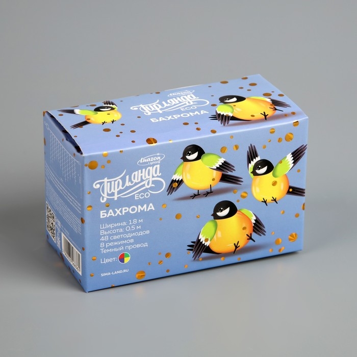 Гирлянда «Бахрома» 1.8 × 0.5 м, IP20, тёмная нить, 48 LED, свечение мульти, 8 режимов, 220 В