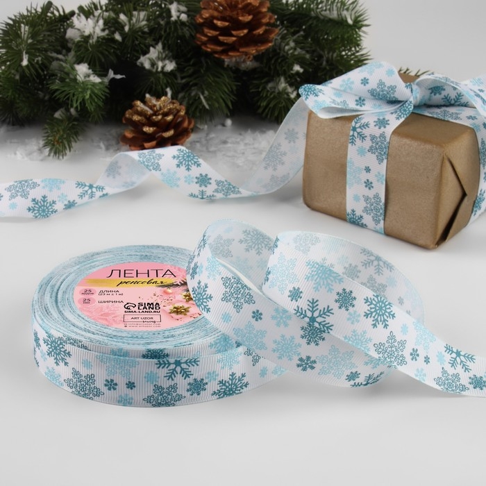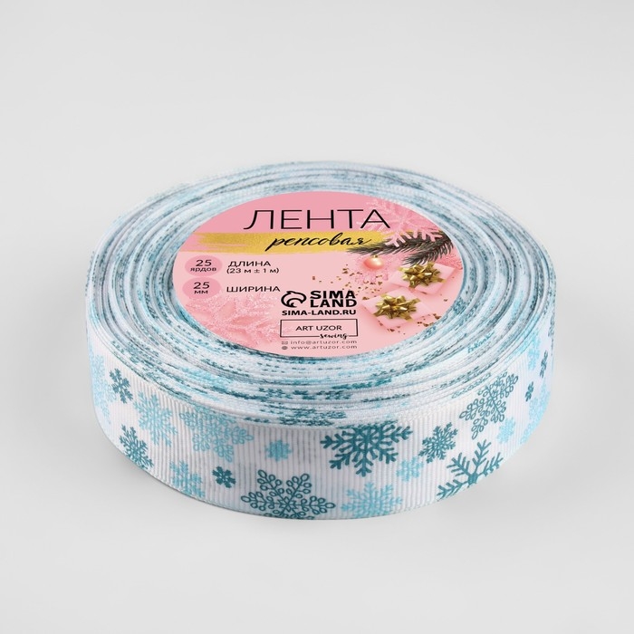 Новый год! Лента репсовая «Объёмные снежинки», 25 мм, 23 ± 1 м, цвет белый №1001
