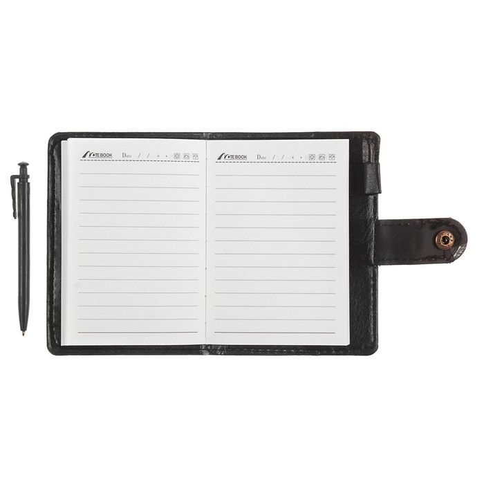 Записная книжка с ручкой А7, 65 листов в линейку, обложка ПВХ с застёжкой на кнопке