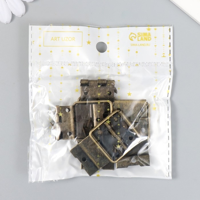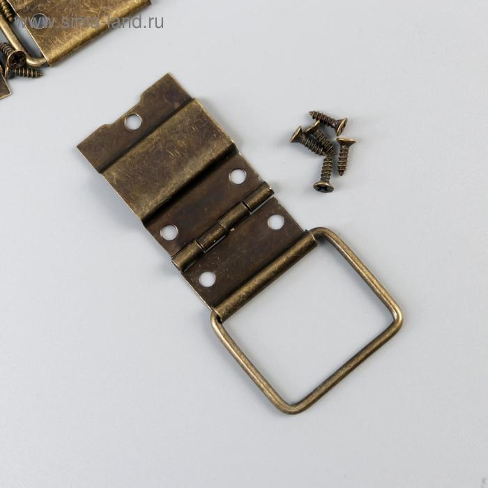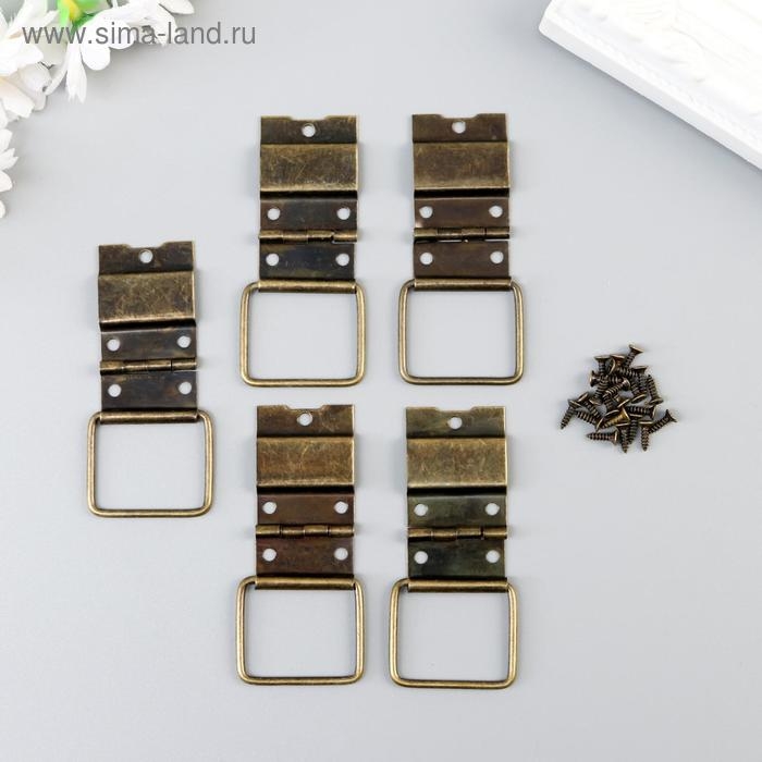 Петля накладная с упором угол открывания 90 градусов + гвозд. бронза набор 5 шт 4,8х2,4 см