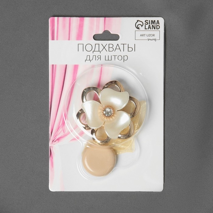 Подхват для штор «Цветок перламутровый», d = 5,5 см, цвет молочный/золотой