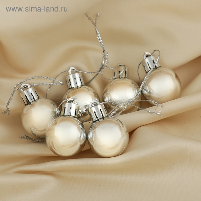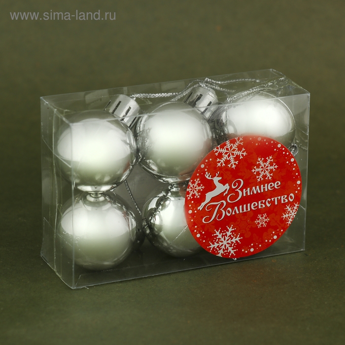 Набор шаров пластик d-3 см, 6 шт "Глянец" серебро