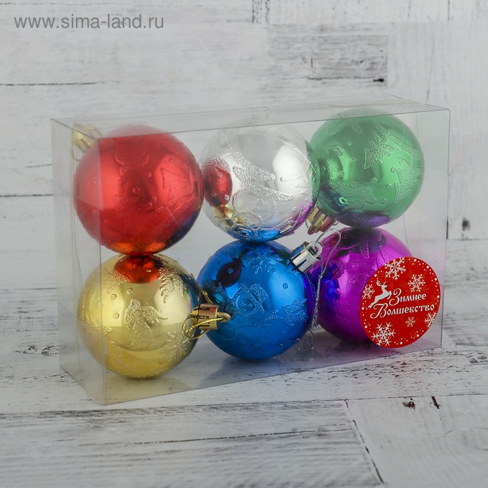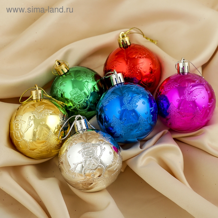 Набор шаров пластик d-6 см, 6 шт "Снеговичок" микс