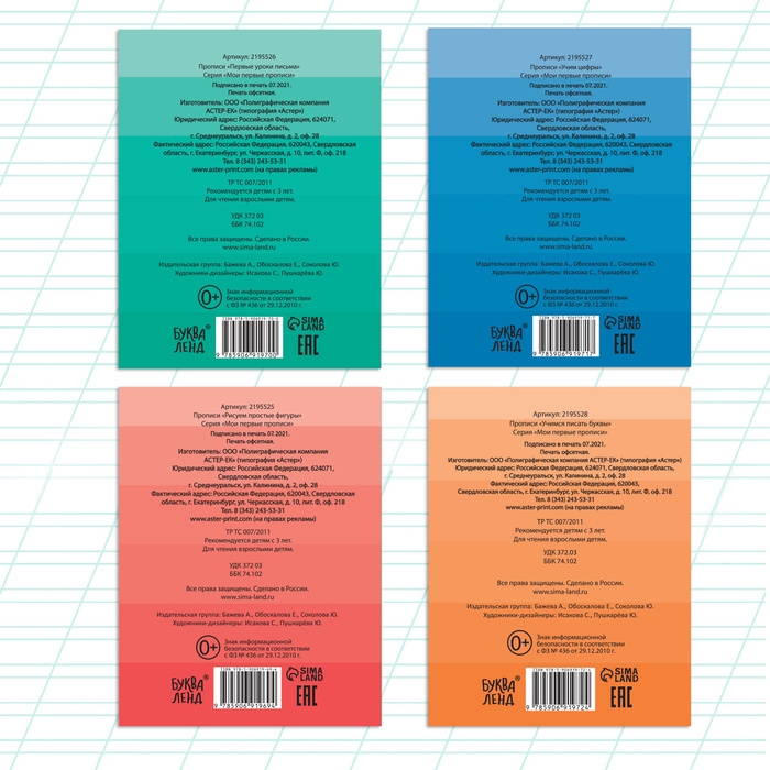 Набор прописей разработан с учётом стандартов образования ФГОС. Занимаясь по ним, ребёнок сможет подготовиться к школе.
