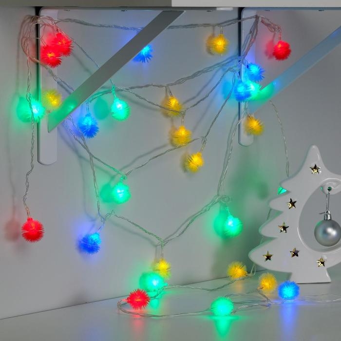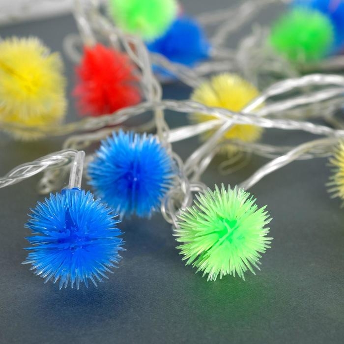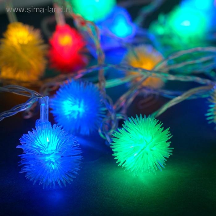 Гирлянда «Нить» 3 м с насадками «Шарики», IP20, прозрачная нить, 20 LED, батарейки AAх3 (нет в комплекте), свечение мульти