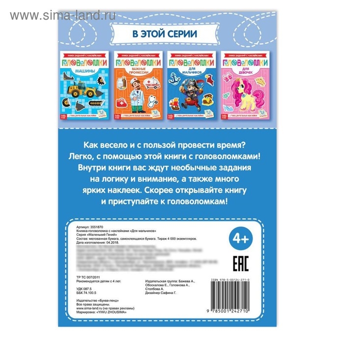 В серии книг с наклейками «Головоломки» представлено 4 издания: