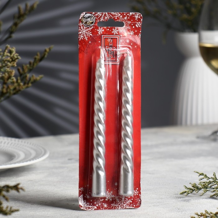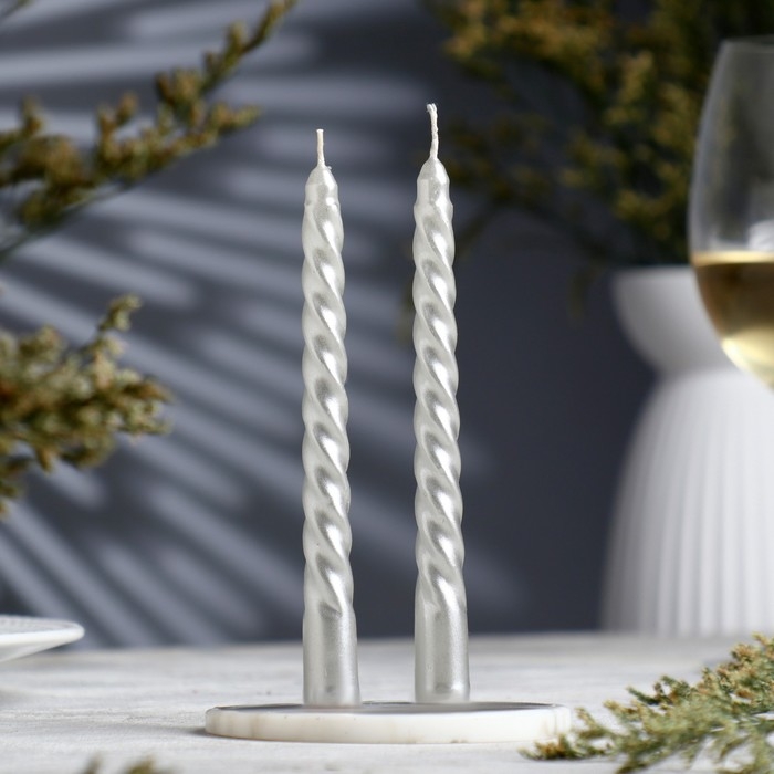 Набор свечей витых, 1,5х 15 см, 2 штуки, серебряный металлик