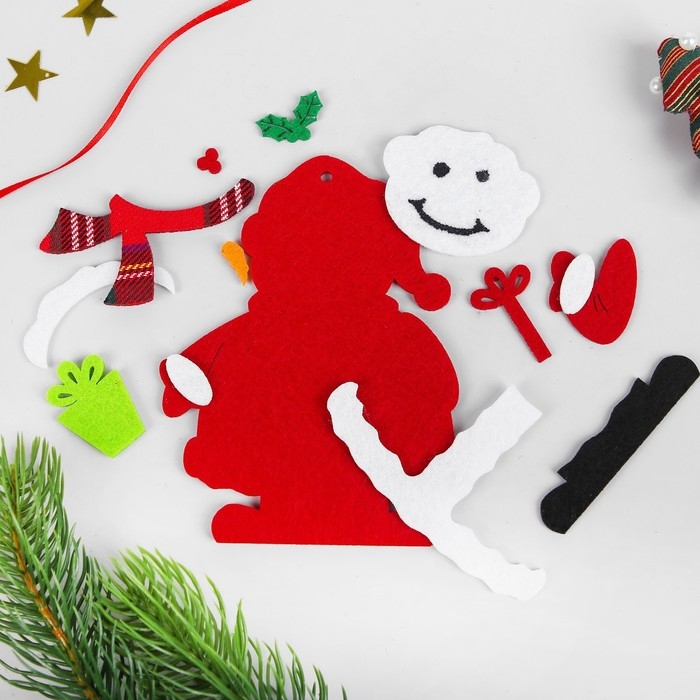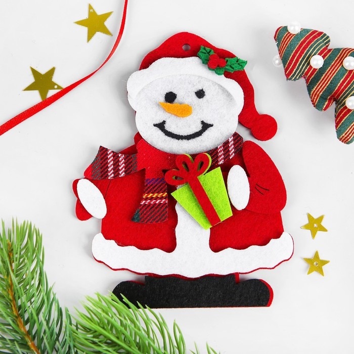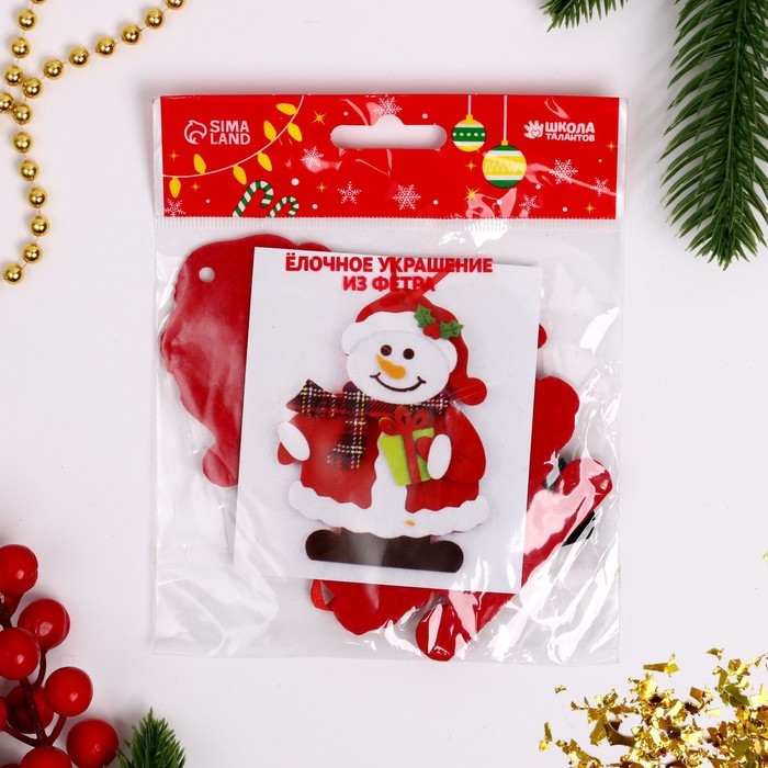 Набор для творчества - создай ёлочное украшение из фетра «Снеговик с подарком»