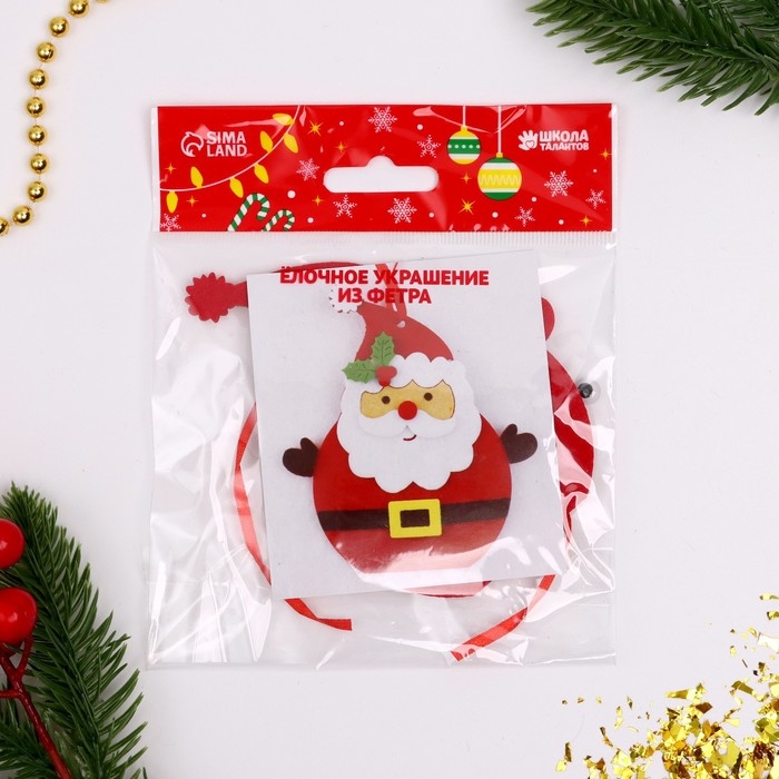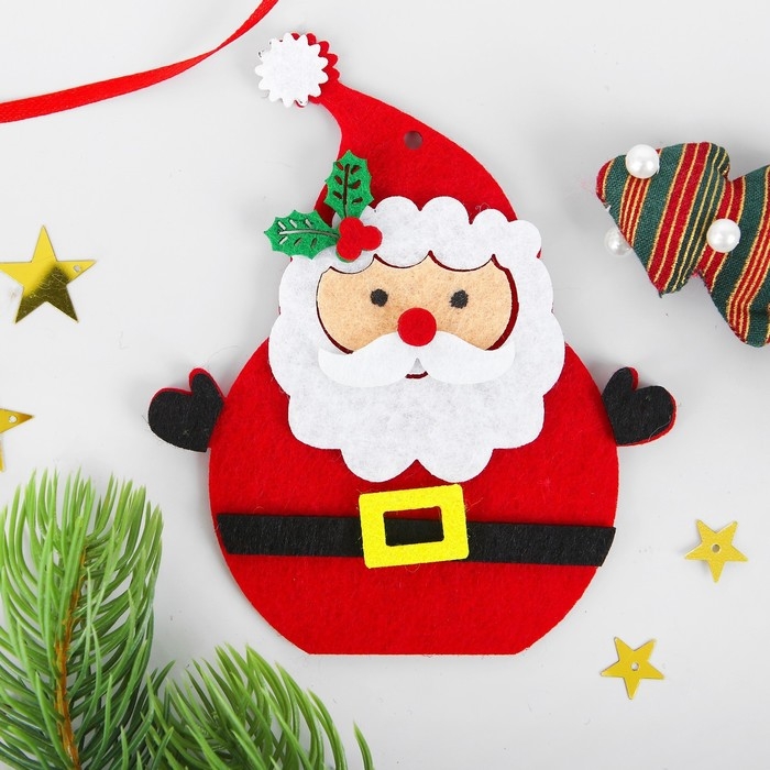 Набор для творчества - создай ёлочное украшение из фетра «Дед мороз - красный нос»