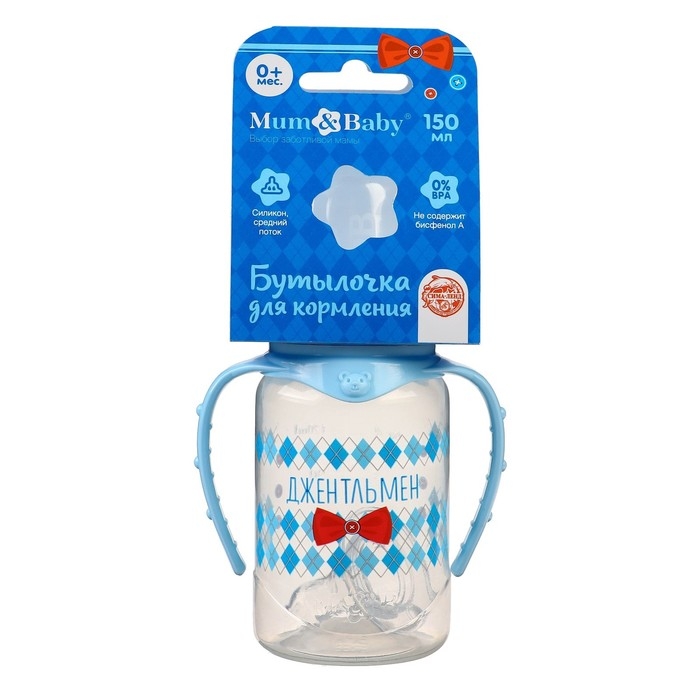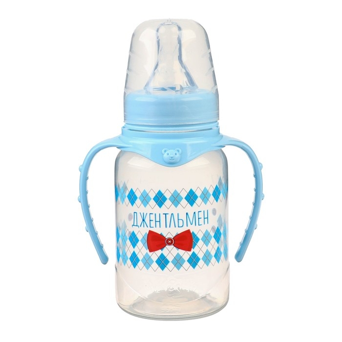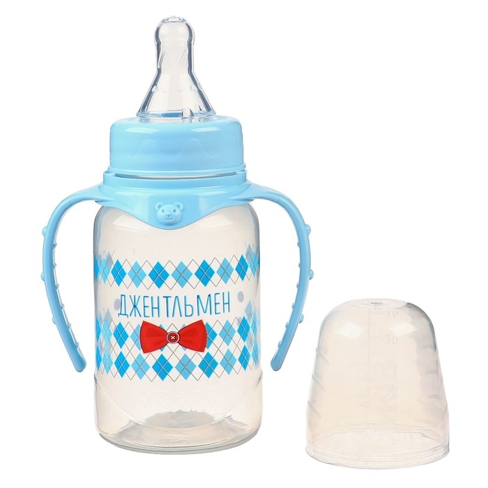 Бутылочка для кормления «Маленький джентльмен» детская классическая, с ручками, 150 мл, от 0 мес., цвет голубой