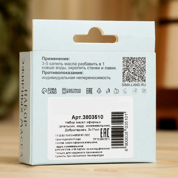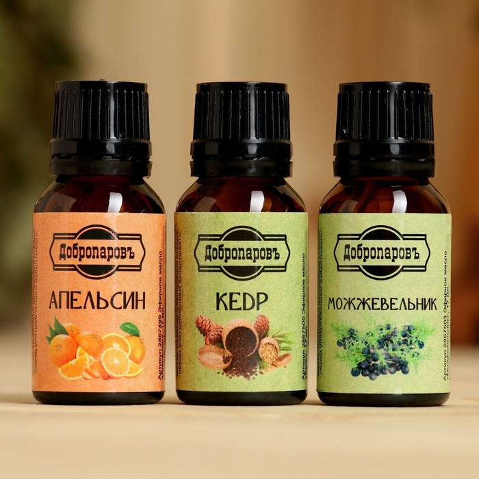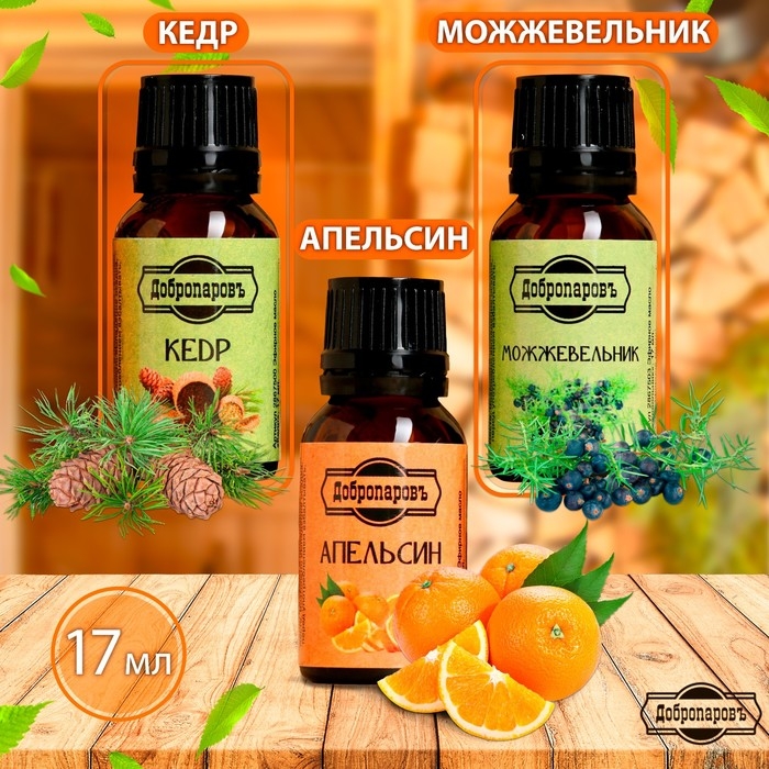 Набор эфирных масел апельсин, кедр, можжевельник, "Добропаровъ", 3 шт по 17 мл
