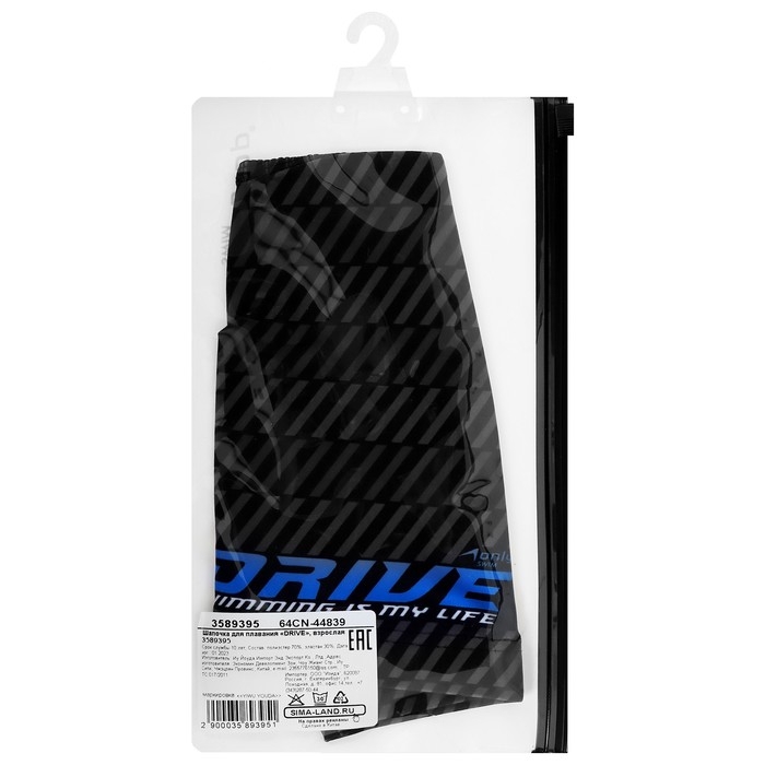 Шапочка для плавания взрослая ONLYTOP DRIVE, тканевая, обхват 54-60 см
