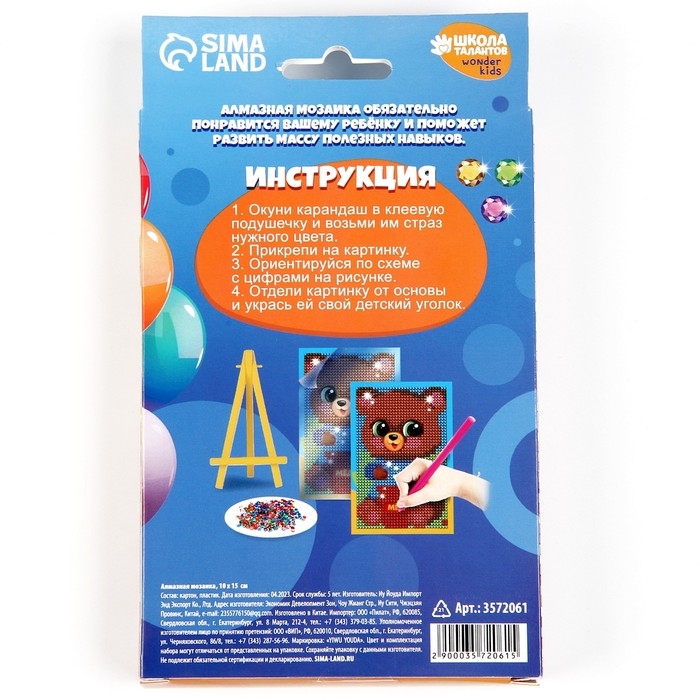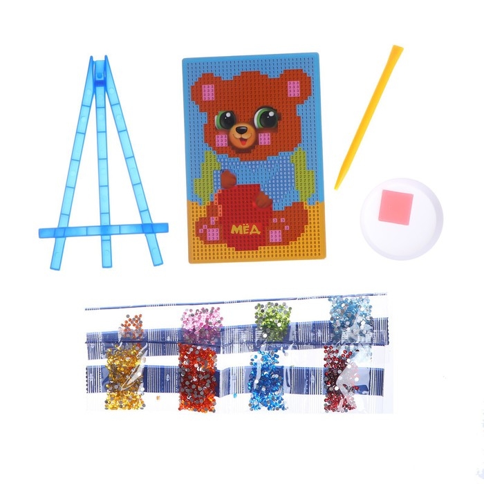 Алмазная мозаика на подставке «Мишка» для детей, размер 10 х 15 см. Набор для творчества