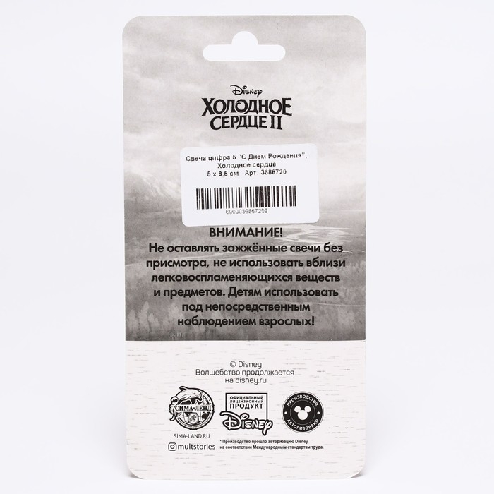 Свеча для торта "С Днем Рождения", цифра 5, Холодное сердце