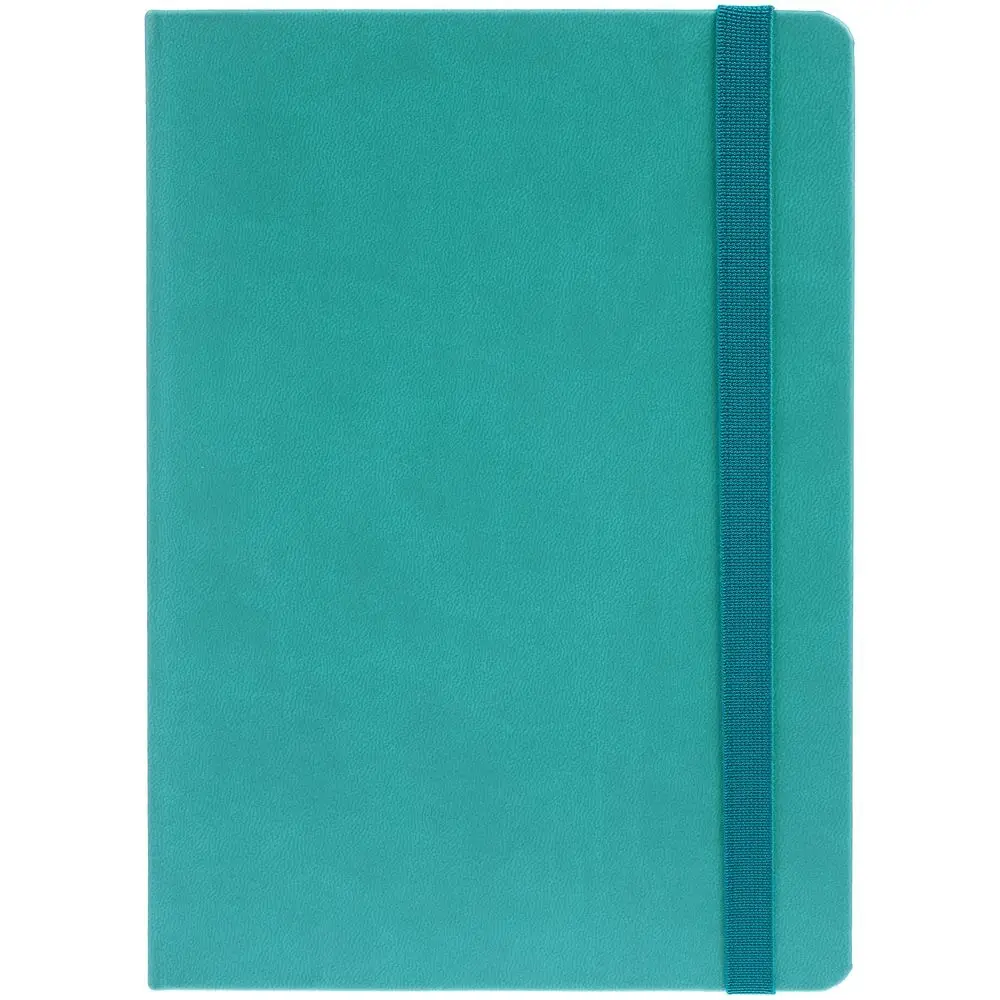 Ежедневник с твердой обложкой, выполнен из материала Latte, цвет морской волны II, обрез бирюзового цвета, дополнен резинкой и ляссе бирюзового цвета.