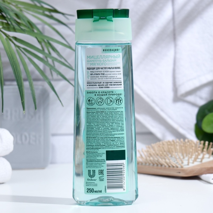 Шампунь-бальзам для волос 2 в 1 Чистая линия «Хлопковое молочко», 250 мл