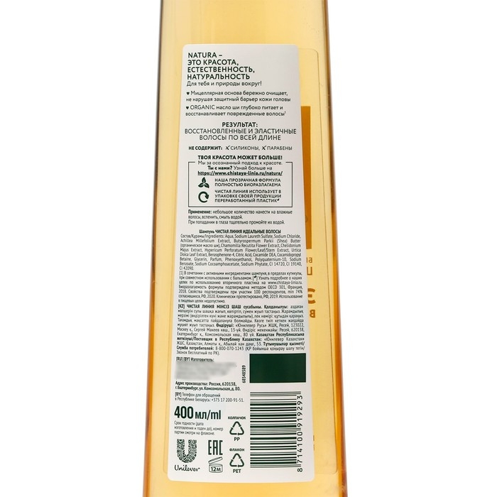 Мицеллярный шампунь для волос Чистая линия «Экспресс восстановление», 400 мл