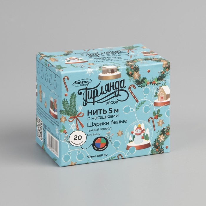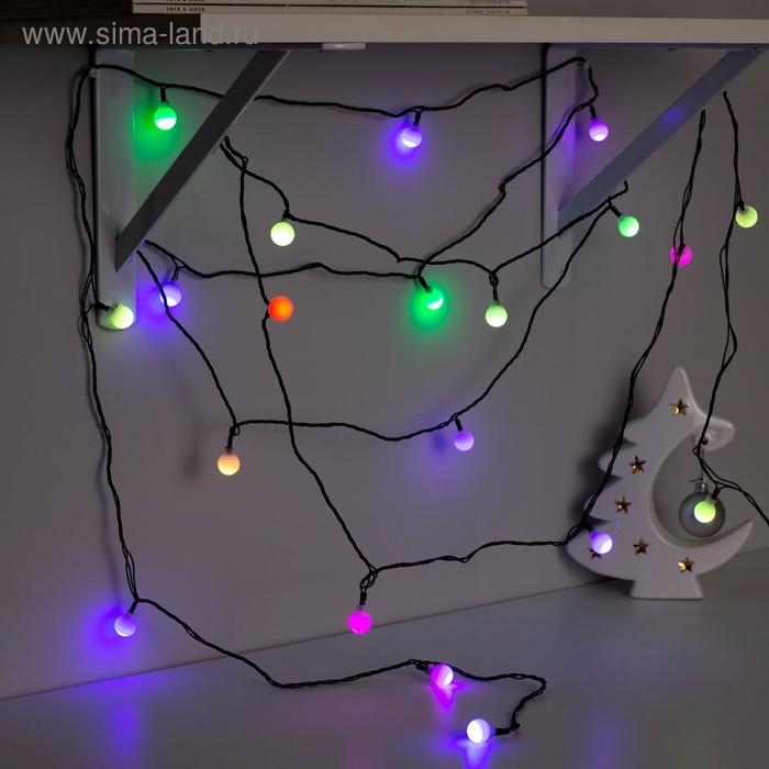 Гирлянда «Нить» 5 м с насадками «Шарики белые», IP20, тёмная нить, 20 LED, свечение мульти (RG/RB), мигание, 220 В