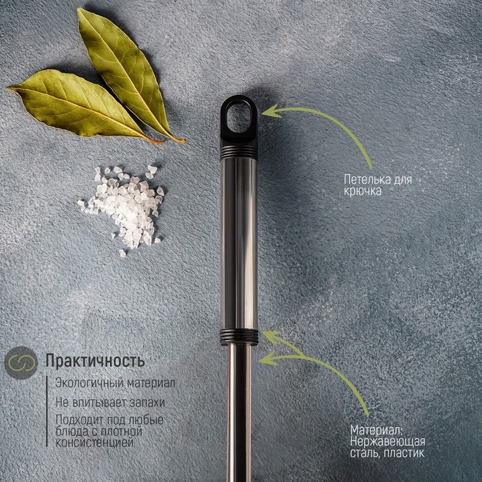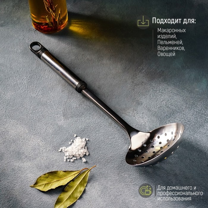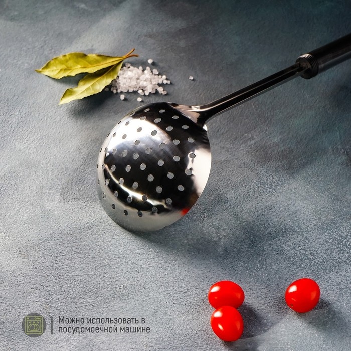 Шумовка из нержавеющей стали Доляна «Металлик», 42 см, d=23 см, цвет серебряный