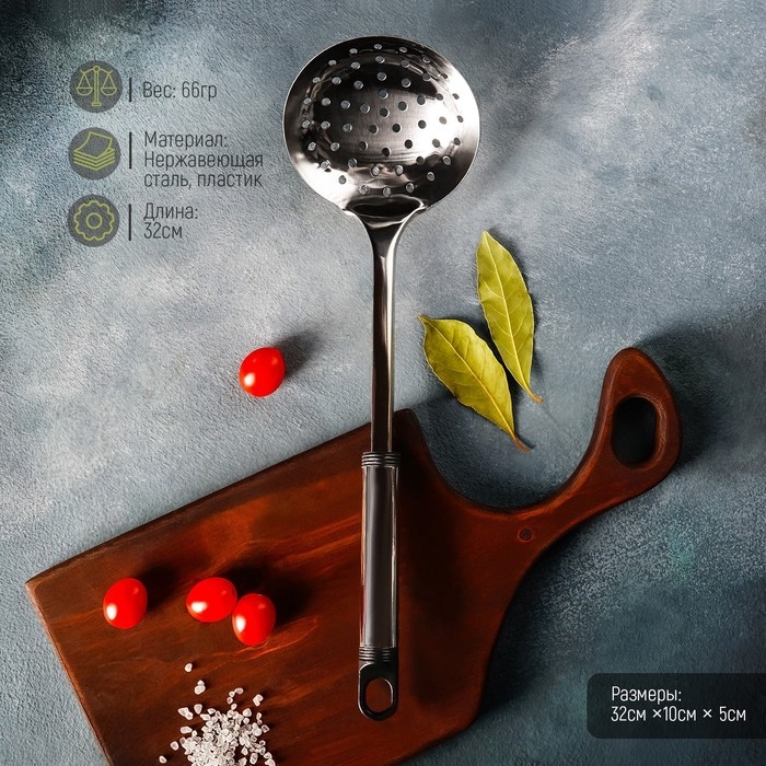 Шумовка из нержавеющей стали Доляна «Премиум», 32 см, цвет серебряный