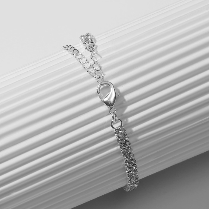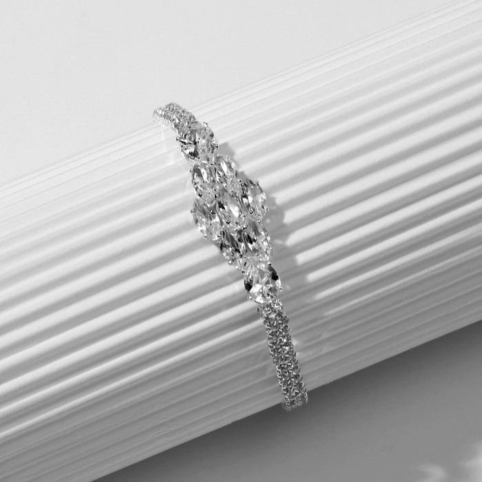 Браслет со стразами «Циркон» изыск, узор, цвет белый в серебре, 15см