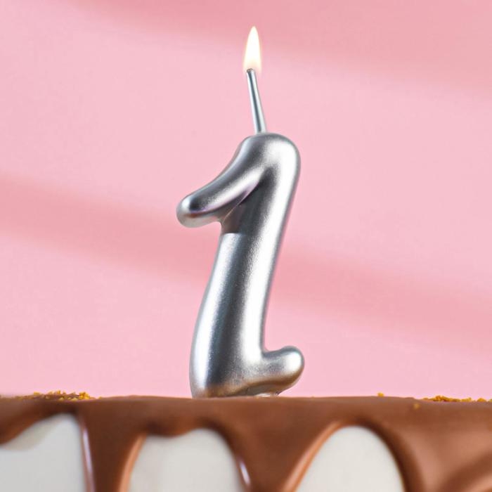 Свеча для торта цифра "Серебряная", 5,5 см, цифра "1"
