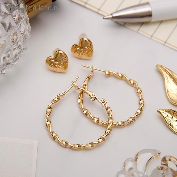Серьги-кольца с пусетами «Сердце», цвет золото, d=2,5 см