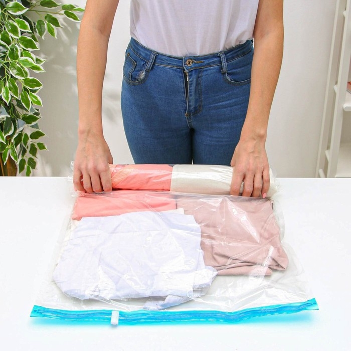 Упаковочные вакуумные пакеты отлично подходят для хранения вещей таким образом, чтобы они не занимали слишком много места. В действительности, пространство, занимаемое упакованной в такой пакет одеждой, уменьшается вплоть до 50-80%.