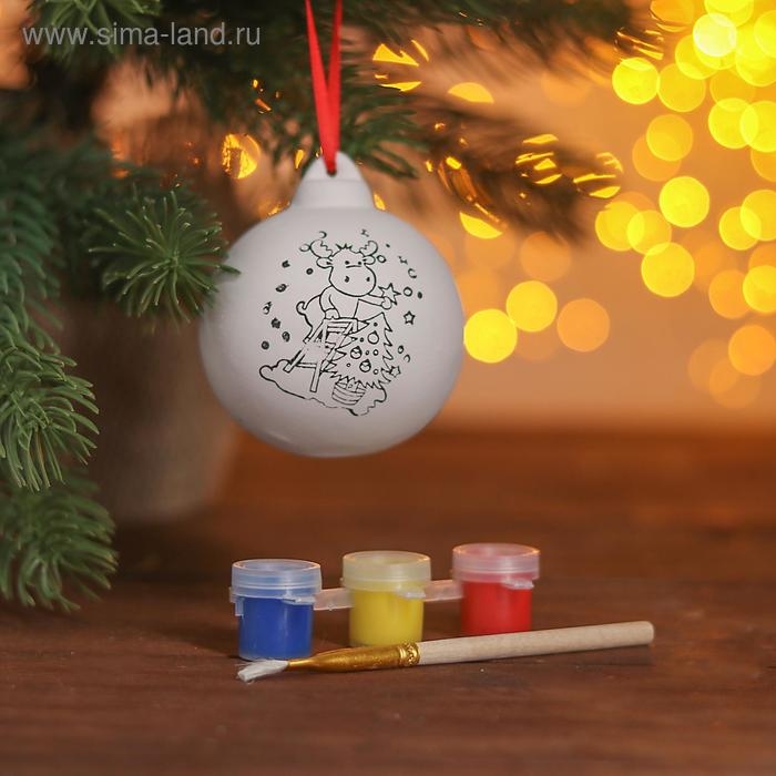 Новогодний шар под раскраску «Украшаем ёлку» с подвесом, краска 3 цв. по 2 мл, кисть